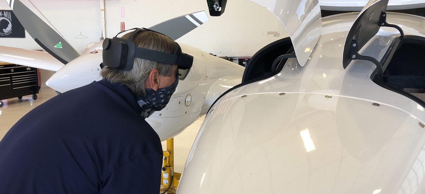 Engineer inspecting the aircraft in Hololens. Source: Spiral Technology