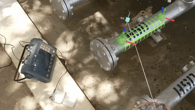 With the calibrated grid in place, you are fully equipped to take the measurements. We leave the selection of the appropriate NDT method, sensor, and interpretation of the results to the NDT professionals as we assume you are certified and know the procedures. The only requirement for the sensor to be integrated into the AR scene is a wireless module or adapter.